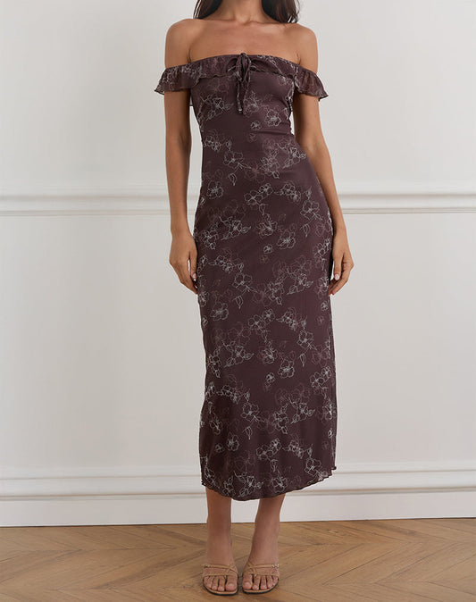 Gabriela Midi Dress in Garden Floral Brown