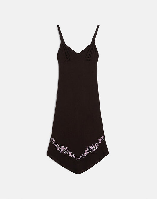 • Quelin Midi Dress in Chocolate Brown with Rose Embroidery