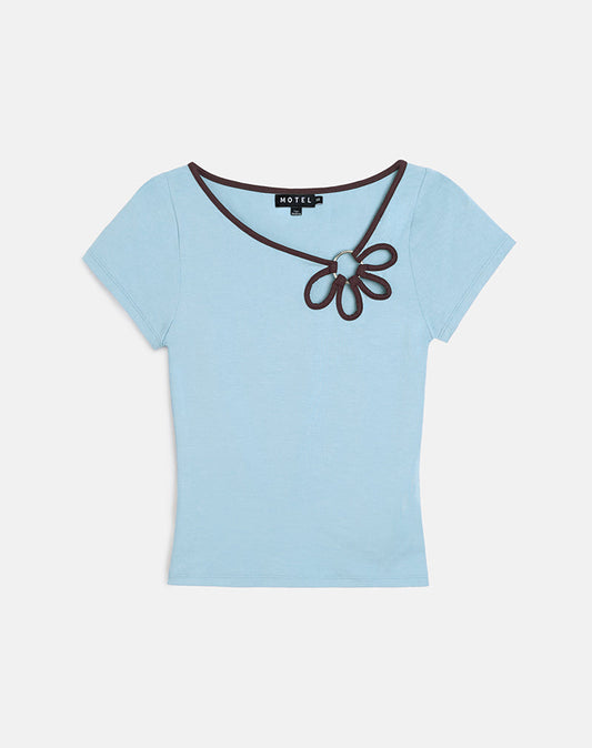 Bunga Flower Cut Out Top in Nantucket Blue with Chocolate Binding
