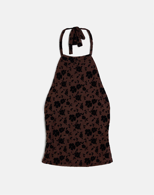 • Raceline Halterneck Top in Rayon Jersey Chocolate Brown