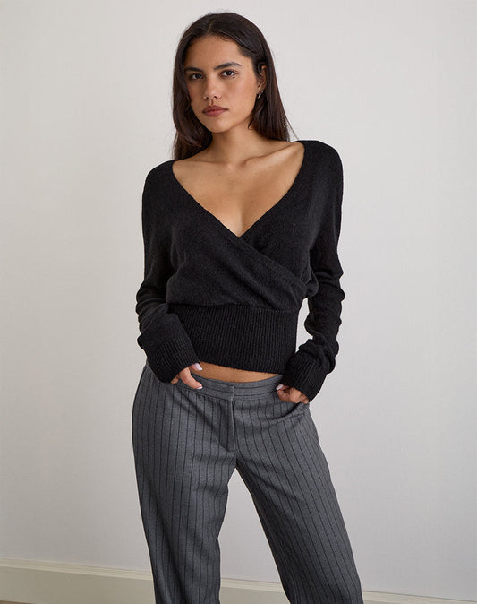 Mikanu Halterneck Blouse in Pinstripe Navy