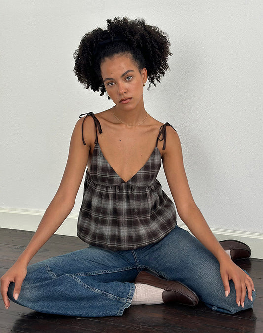 • Kaoru Triangle Bust Cami Top in Grey Check
